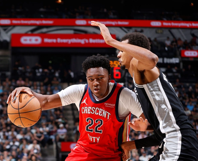 2025年13号秀德里克-奎因在最新一个比赛日出战了和马刺的比赛。虽然最终鹈鹕惜败,但是奎因的表现相当出色,他上场33分钟轰下33分10板10助攻4帽,投篮15中11,正负值+14。